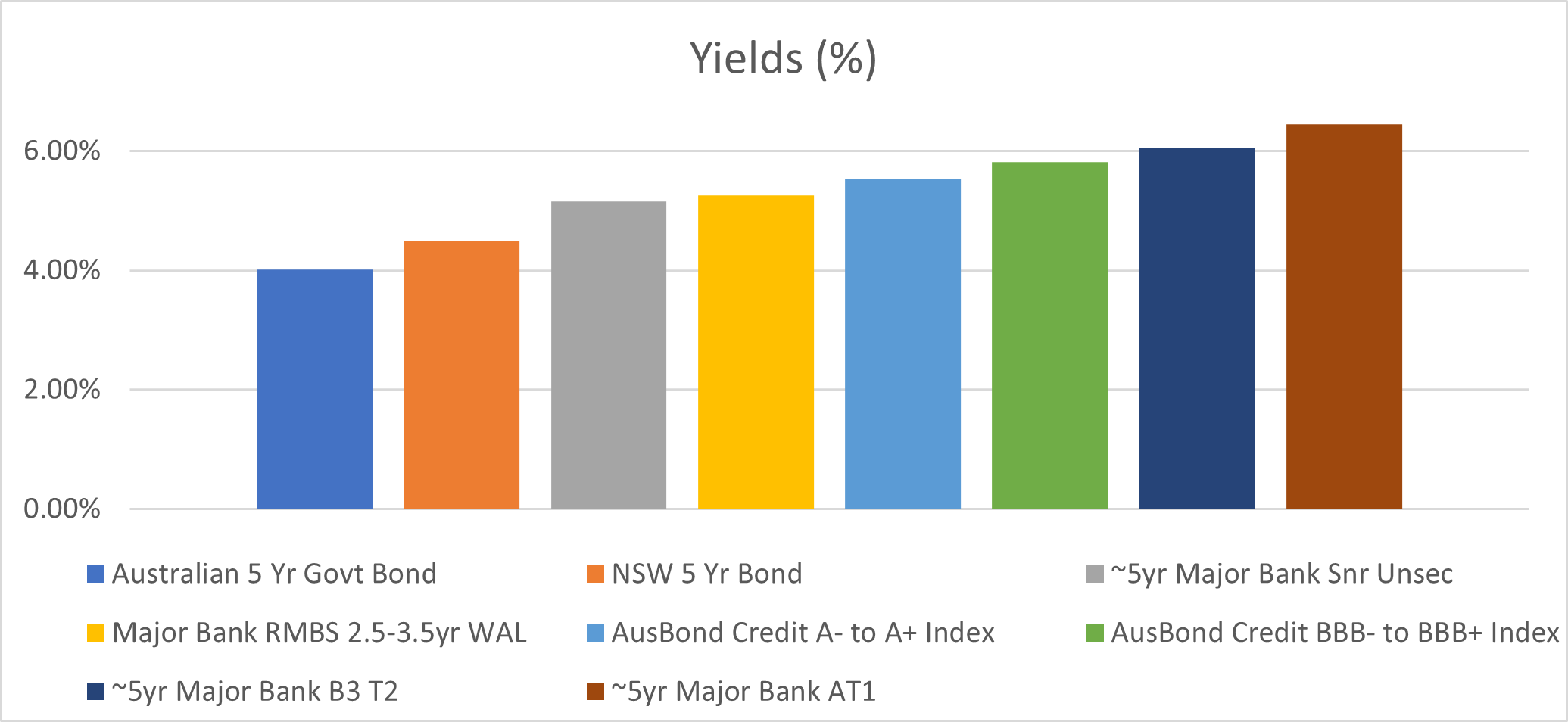 He points to this graph, which compares a range of Australian fixed-income yields at April 30, 2024.