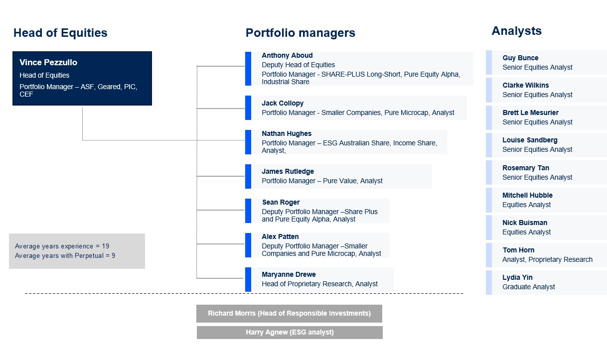 Vince brings over 28 years’ experience to the role and has been with Perpetual since 2007, most recently as the Deputy Head of Equities since 2016. His deep experience and understanding of Perpetual’s investment approach, process and philosophy is unrivalled and he has a proven ability to deliver strong performance for our clients.